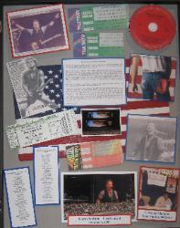 The custom Bruce Springsteen memorabilia collection displays a favorite CD, concert tickets, various concert photos and song lyrics and a newspaper article |