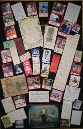 There is practically no limitation to what can be incorporated into your Mount Eve Keepsakes display. To include an original item, the smaller and thinner, the better. But don't dismay, where there is a will, there is a way! Larger items can be reproduced to fit and/or cut out and presented in a 3-D format. Flat documents can be reproduced and scaled down to fit your display. If you think you have particularly unusual sized items and they would not fit in our standard frames, please feel free to send an email to karen@mountevekeepsakes.com. We have a lot of resources at our disposal and will work with you to pull your idea together. The real fun in this business is the creativity involved in designing each unique memorabilia display. |